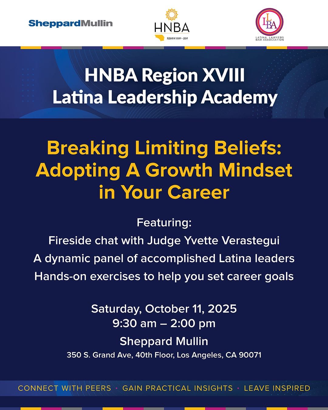 Join us at the Latina Leadership Academy, co-hosted with Sheppard Mullin, HNBA Region XVIII, and the Latina Lawyers Bar Association.